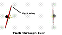 A similar position would be inside of your opponent as you pass by from left to right. When he starts his left hand turn you’ll need to once again be banked but his time you use your soft vision and elevator to line up on his streamer. When you’re lined up just let it keep flying straight and sooner or later you’re going to hit the mark because the only remaining dimension is your depth.